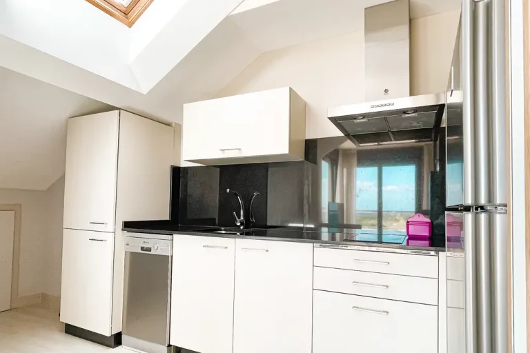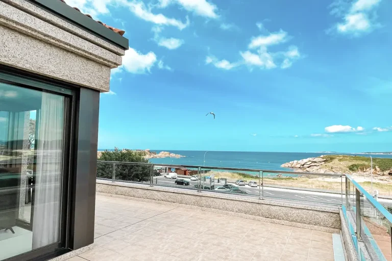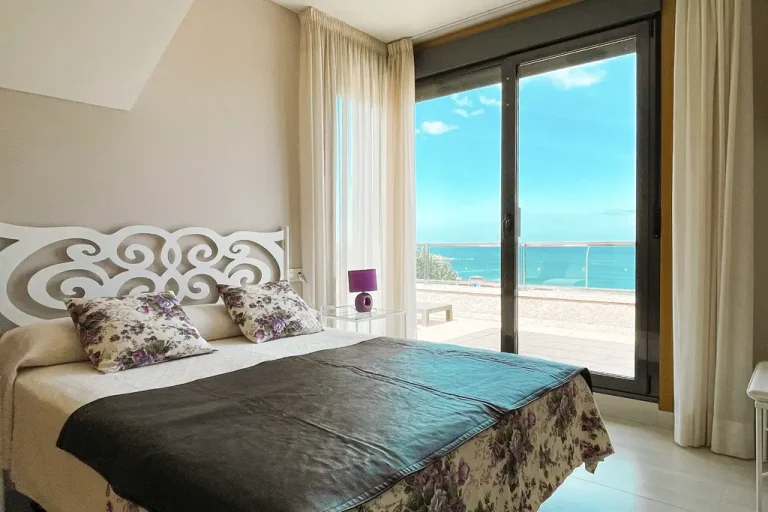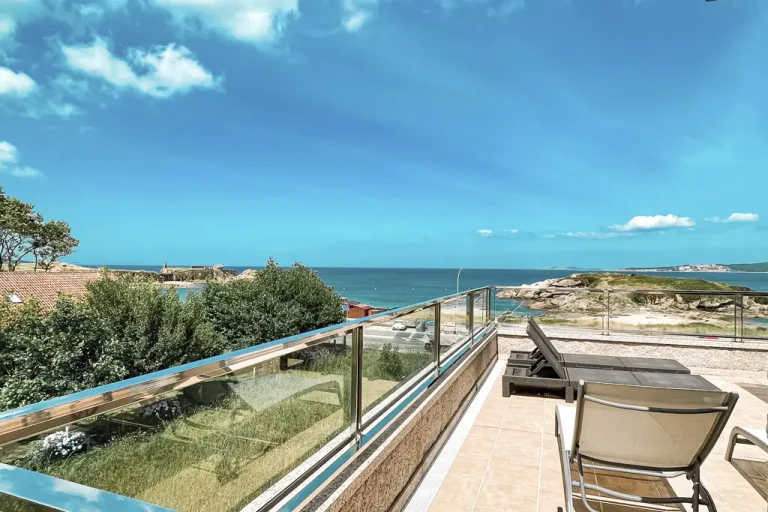Exclusive apartments with large terraces that occupy the entire width of the building. They are located on the attic floor, with privileged views from both the master bedroom and the living room. We have two apartments of this type: the front one, with sea views; and the rear one, with front views of the pools and side views of the sea.